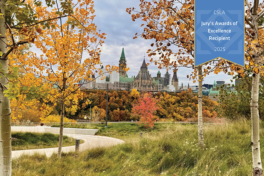 The CSLA Awards of Excellence recognize preeminent examples of Canadian landscape architecture. “The jury was pleased to award the Jury’s Award of Excellence for this compelling project in the core of the capital, which demonstrates the impact of a strong underlying site concept. Kìwekì Point stands out because of the scope of its transformation, the inclusion of a critical link with Major’s Hill Park to the South and much improved accessibility in general. To those seeing this space for the first time, the main axis and connected spaces look timeless. In addition, the project’s sensitivity to Reconciliation, reflected in the interpretive and artistic site elements as well as in the apt handling of the Kichi Zibi Innini and Champlain statues, is to be commended. The project capitalizes on key panoramic views recalling natural and cultural history which significantly enhance the visitor experience. The environmental management strategies adopted for the site were also appreciated by the jury.”