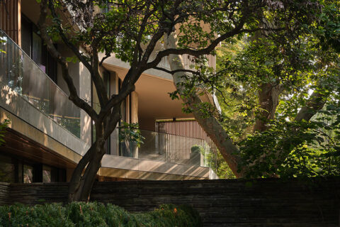 Seamlessly blending the Foxbar Town Homes within the existing fabric of the South Hill/Forest Hill neighbourhood, the landscape design around the townhouses includes low maintenance plants, yew hedging, masses of purple wintercreeper, boxwoods, and native Eastern redbud, pin oak, and red maple trees. To address grade issues, retaining walls were built around the town homes. A swathe of switch grass delineates the transition to the tower behind the town homes.