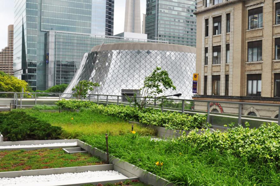 Breaking convention, we opted for a street profile that is heavily planted along the edges of the building, leaving a flexible courtyard space where students can study or relax. Our bold horticultural approach, incorporating tall, sweeping grasses, hedging, and crab apple trees, brings attention to the building and changes the character of the surrounding streetscape to one of dense vegetation with seasonal transitions.