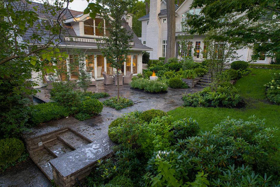 This beautiful and lush garden oasis is a labour of love for a passionate gardener. JRS has worked closely with the client over the past 15+ years to design and evolve the entire outdoor space, from the pool and Wiarton Stone paved pool terrace, to the plantings and deck. The result is an organic environment that can be experimented with and changed over time in subtle ways, all within the framework of the original design. Many of the original plantings have grown to provide incredible seasonal texture, colour and privacy for this urban garden.